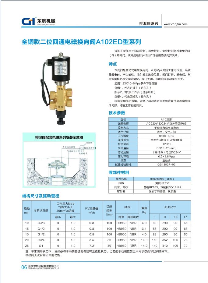 排泥閥用全銅電磁閥A102ED 防水等級IP65 全銅閥體